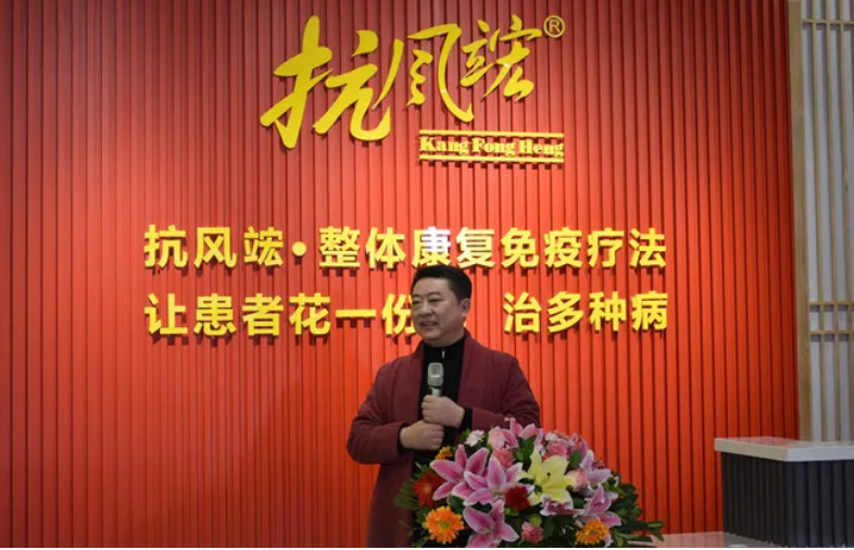 ▲抗風竤醫(yī)療集團創(chuàng)始人張汭鈞先生為抗風竤中醫(yī)門診喬遷新址、新藥上市慶典致辭