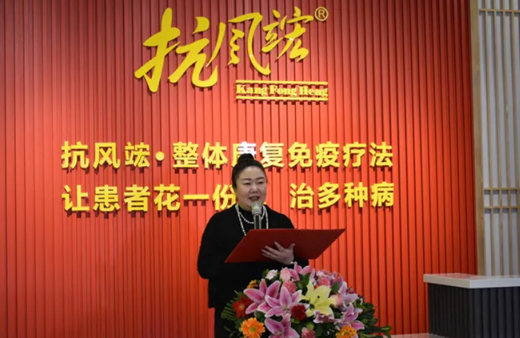▲抗風竤醫(yī)療集團總裁程莉琂女士為抗風竤中醫(yī)門診喬遷新址、新藥上市慶典致辭
